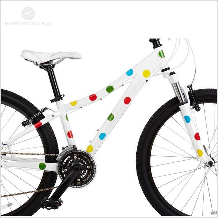 Os autocolantes têm as cores numa base de vinil transparente, pelo que funcionam melhor em bicicletas de cor clara.