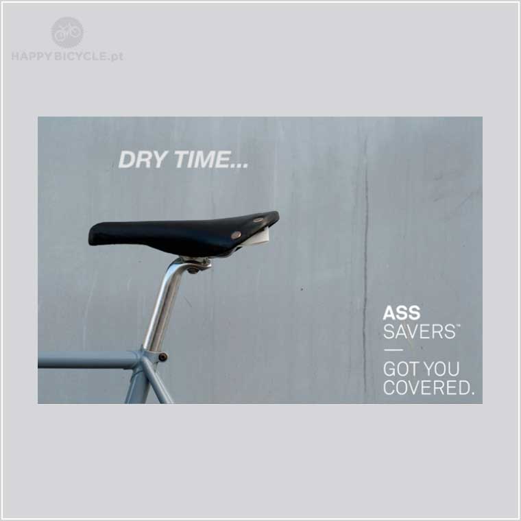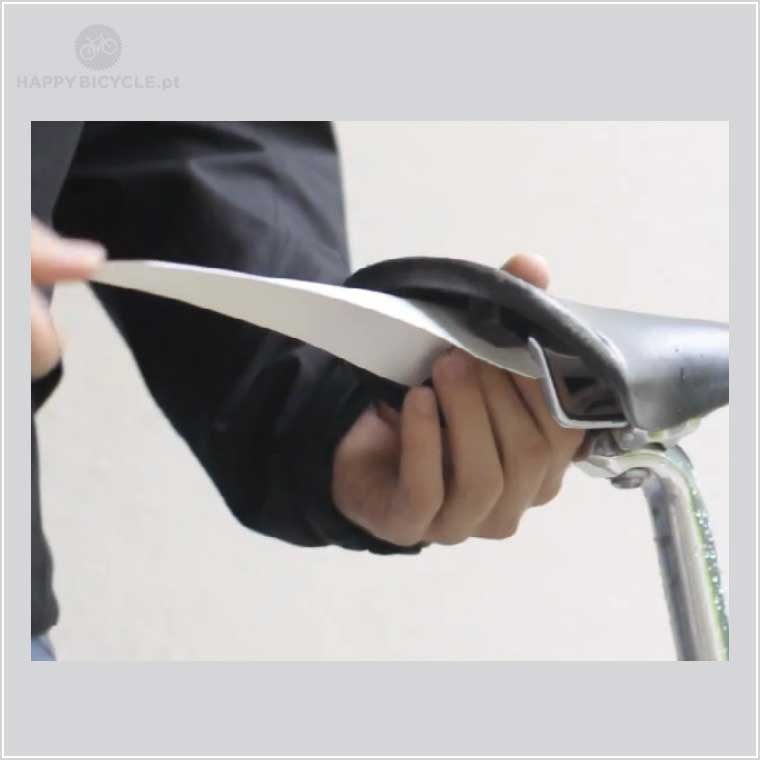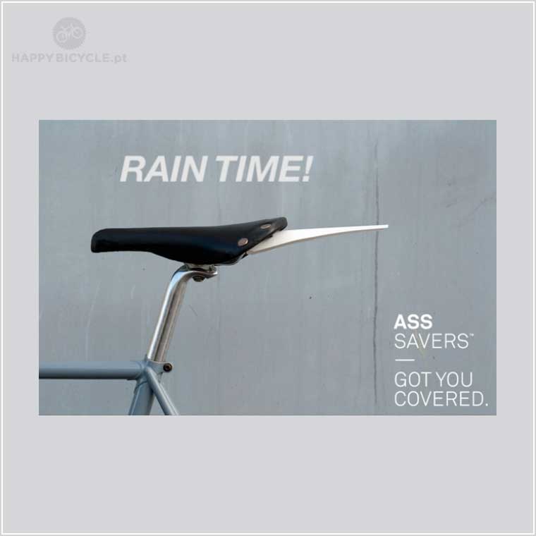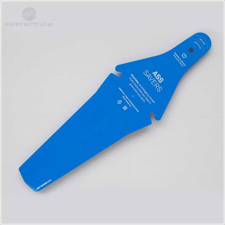O SmartAss encaixa no selim, sem quaisquer ferramentas ou acessórios. E quando parar de chover, basta dobrá-lo e armazená-lo debaixo do selim. O SmartAss encaixa em cerca de 80% dos selins convencionais. Note que, embora muito útil e altamente apreciado, o SamrtAss é um guarda-lamas de emergência, com o objectivo de proteger a zona do rabo, e que não tem a mesma eficiência que uma guarda-lamas completo.