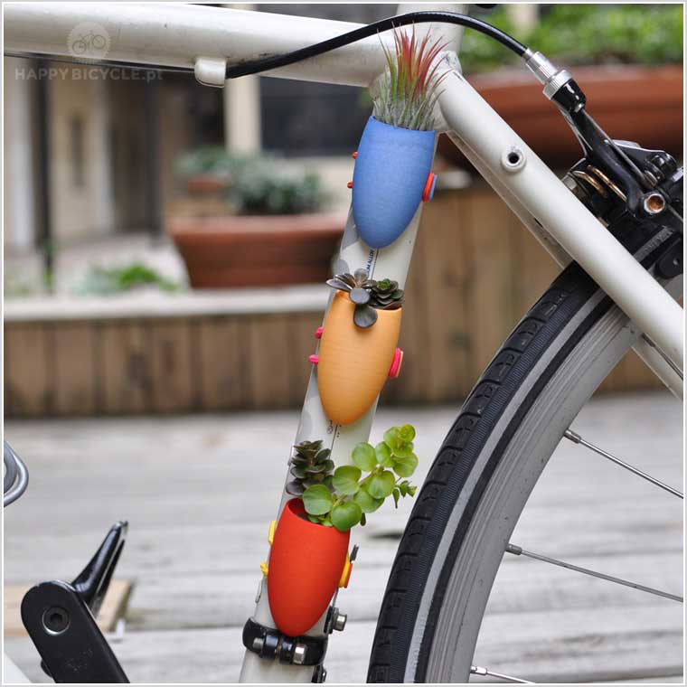 Pequeno e divertido vaso para passear de bicicleta. Traga as suas plantas nas suas aventuras e deixe-as aproveitar um pouco do ar fresco e luz do sol…
