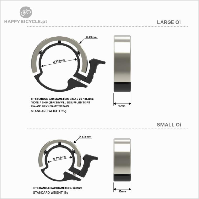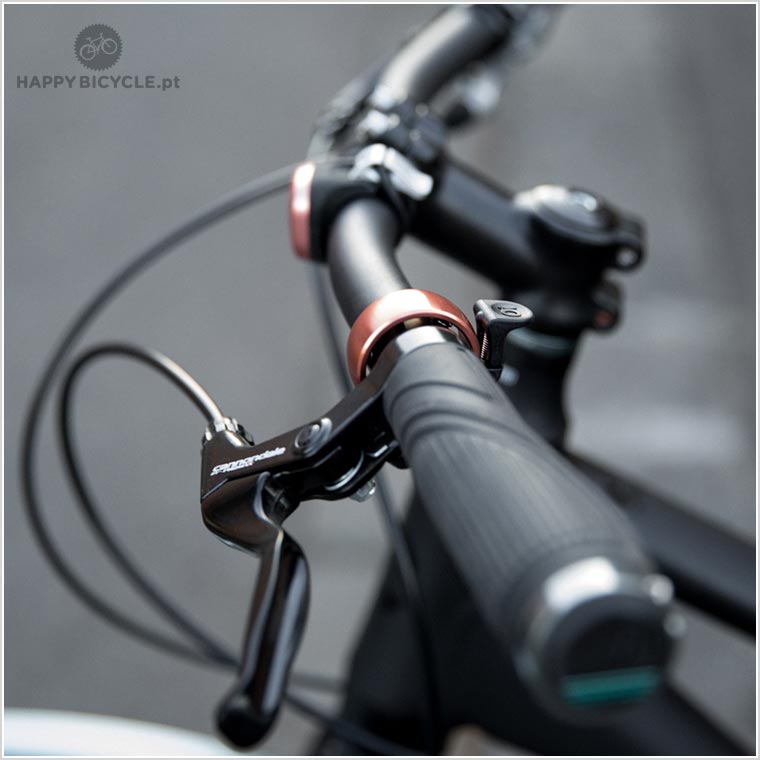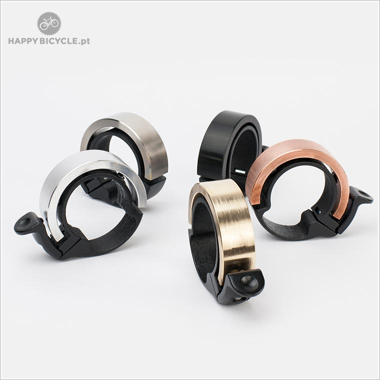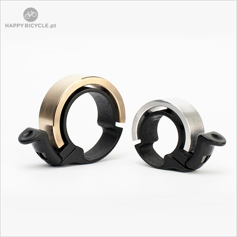 Campainha Oi discreta e elegante da Knog, disponível em diversos acabamento e tamanho.
