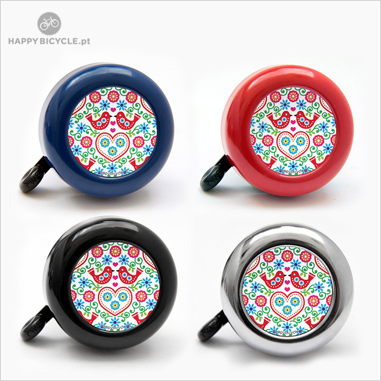 Campainhas de bicicleta com ilustração inspirada nos lenços dos namorados.
