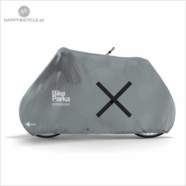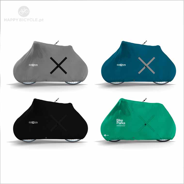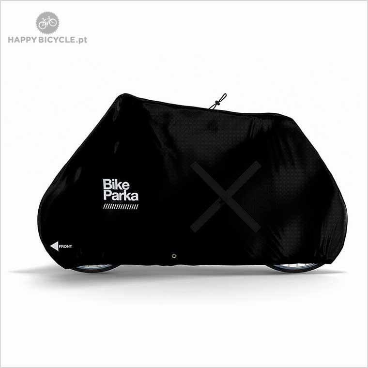 Cada capa ajusta-se de um modo um pouco diferente em cada bicicleta para permitir diferentes tamanhos de quadro, guiador e altura do selim. Para a ajustar à sua bicicleta, começar por colocar a capa sob a roda da frente, e de seguida puxe-a suavemente para trás até envolver toda a bicicleta, certificando-se de que o logótipo fica na roda dianteira.