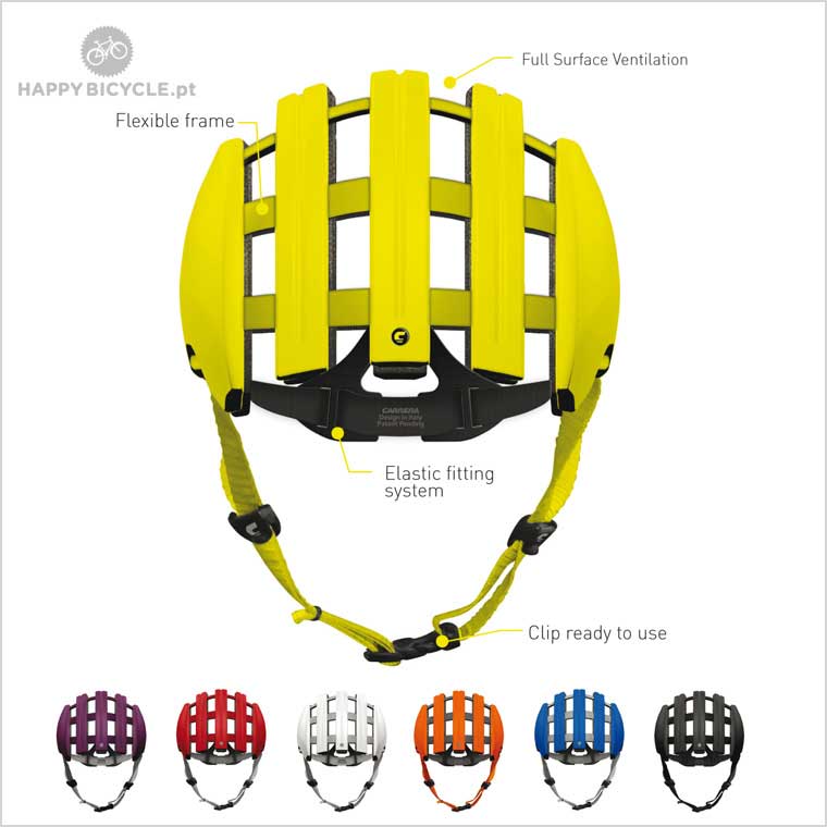 O seu design foi inspirado nos antigos capacetes de ciclismo criados a partir de tiras de couro acolchoadas. Possui uma estrutura flexível patenteada nunca antes vista, que lhe concede um conforto fora de série, sem comprometer a segurança. Chega-se ao ajuste perfeito graças ao sistema de encaixe elástico.