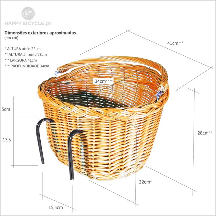 dimensões exteriores: 41 x 28 x 34 cm (largura x altura x profundidade aproximadas)