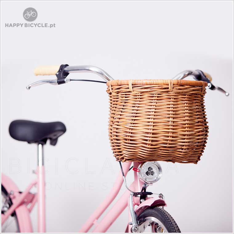 Cesta fabricada em vime castanho, proveniente de plantações sustentáveis na Indonésia e com um processo de cura natural, sem recurso a produtos químicos. Para fixar no guiador através de práticas presilhas de pele sintética removíveis.