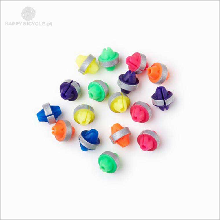 Bolinhas de cor para decorar os raios das rodas da sua bicicleta e que reflectem à noite.