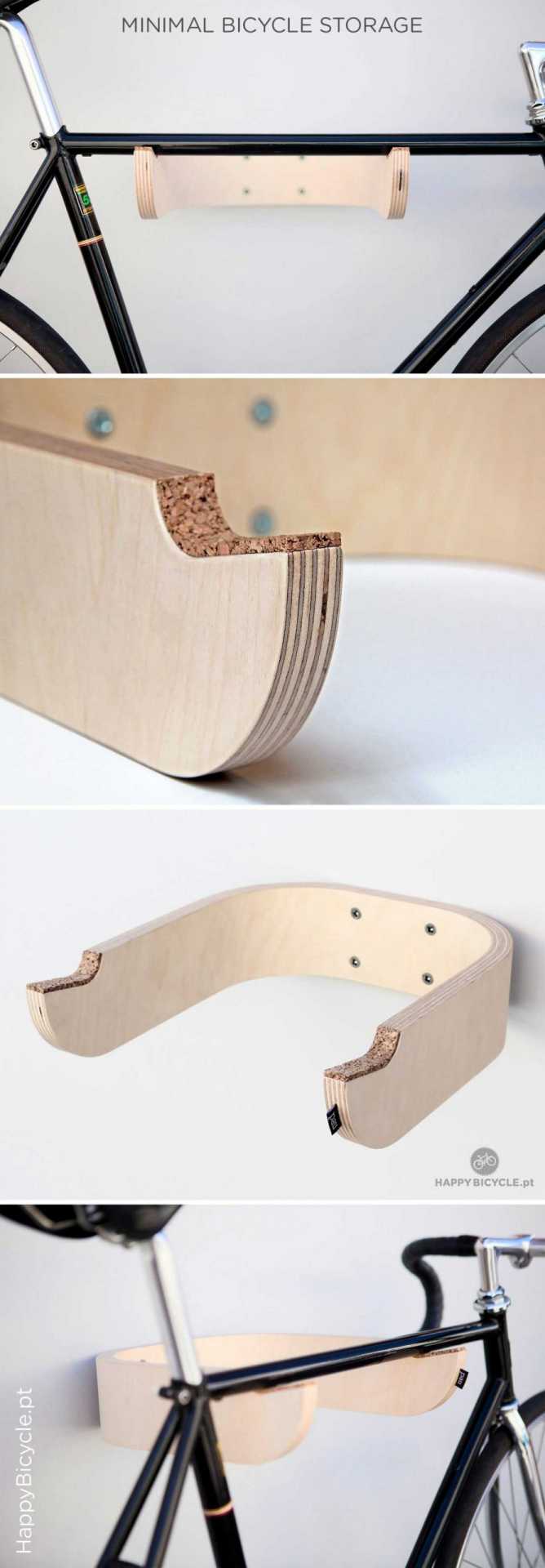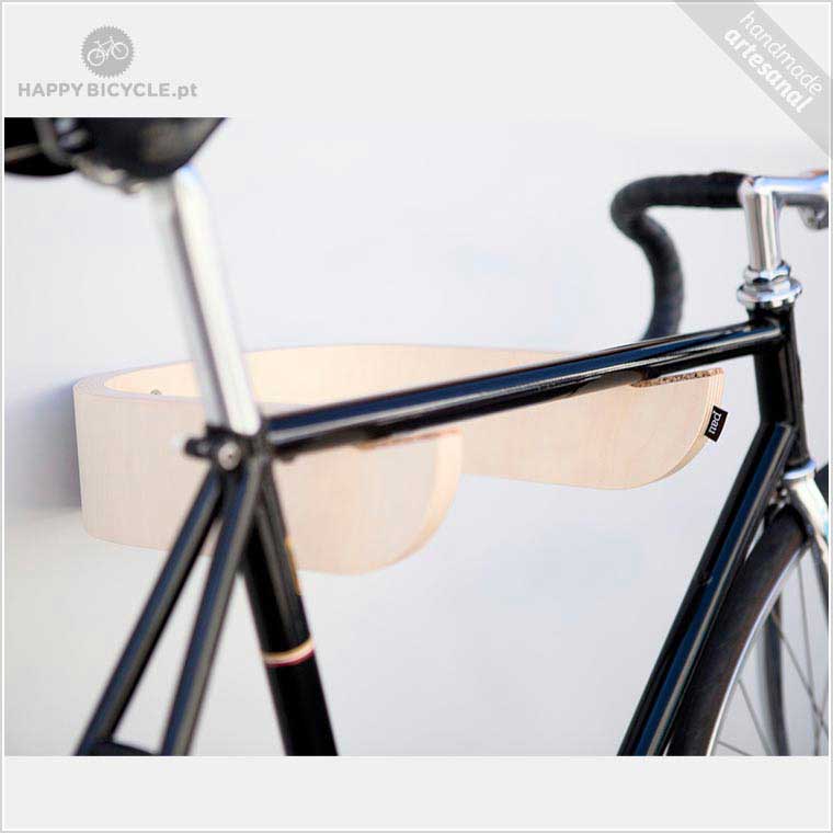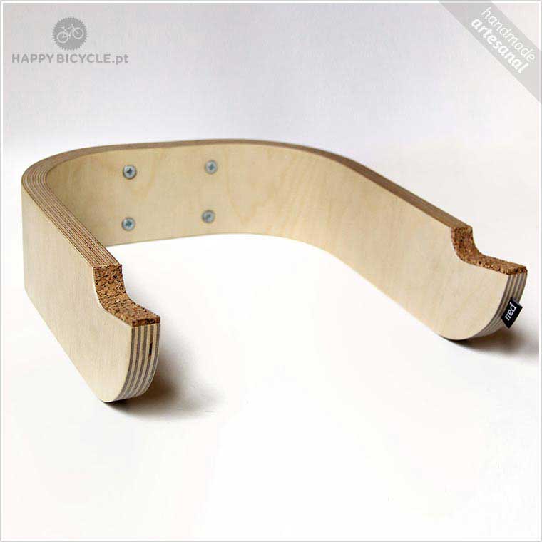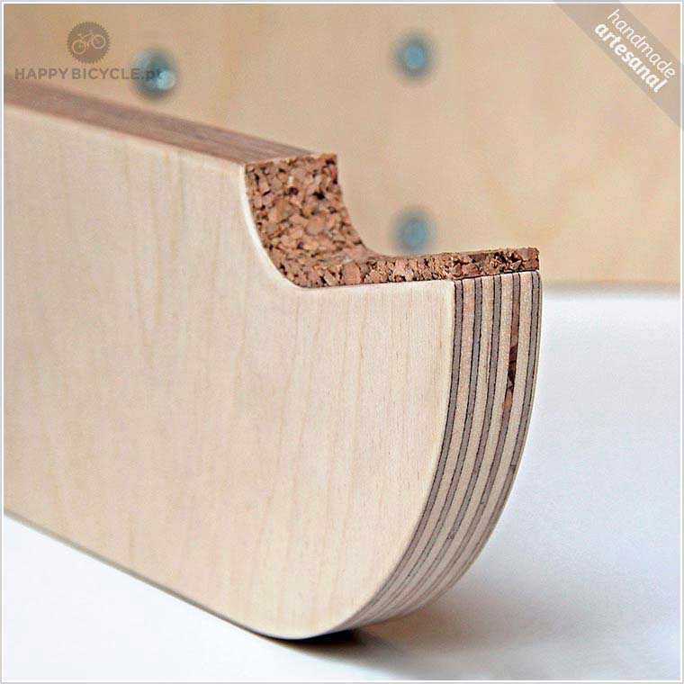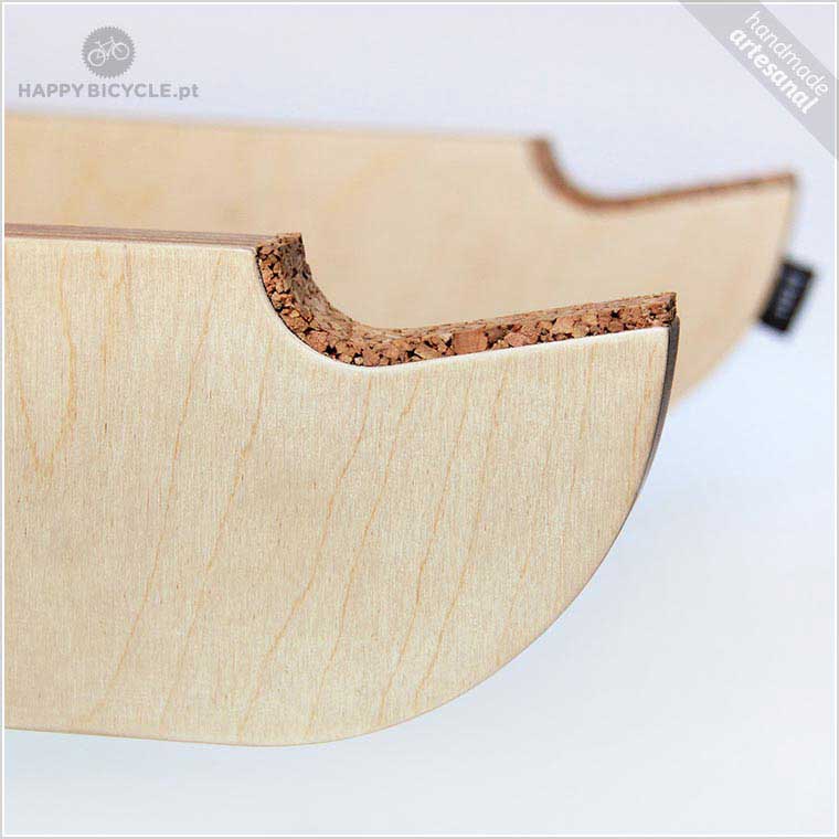 Pau – Suporte de parede para bicicleta em madeira e cortiça.