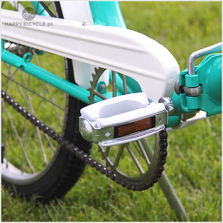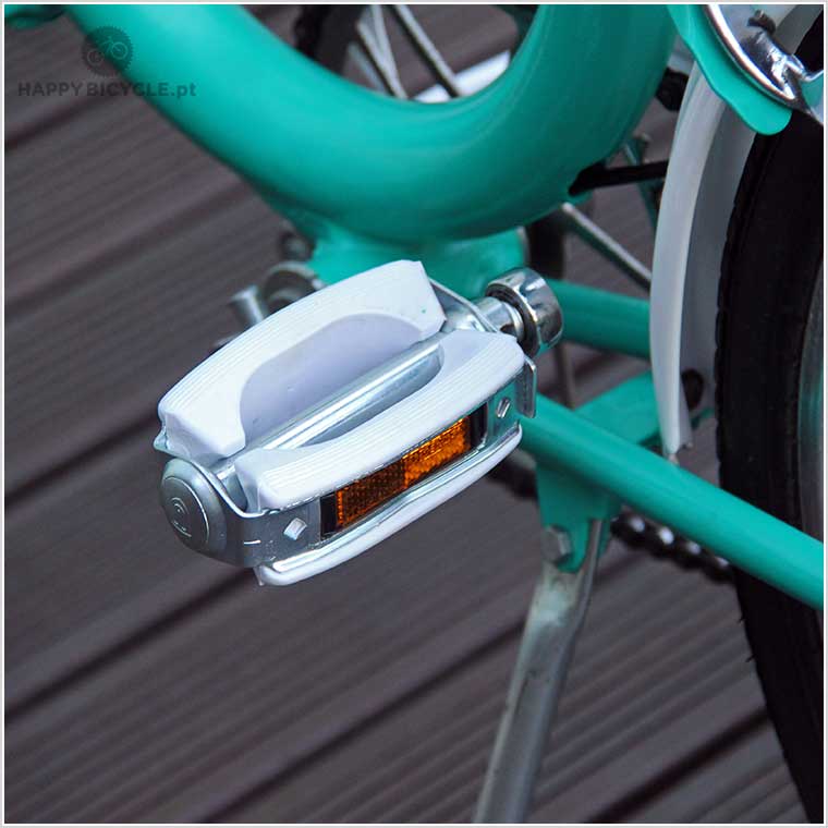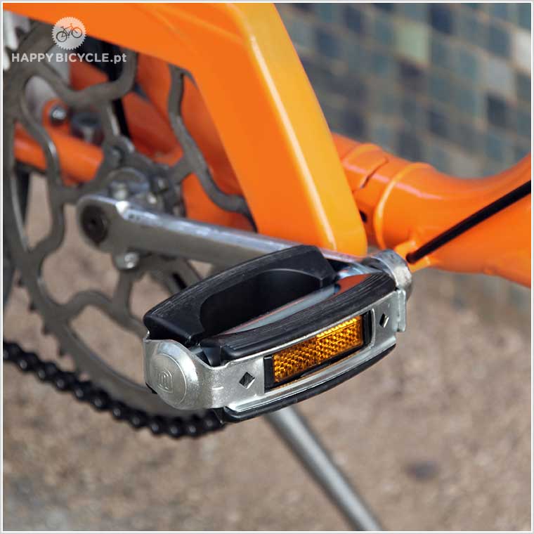 Pedais urbanos retro com estrutura metálica, “piso” anti-derrapante em PVP e reflectores laterais.