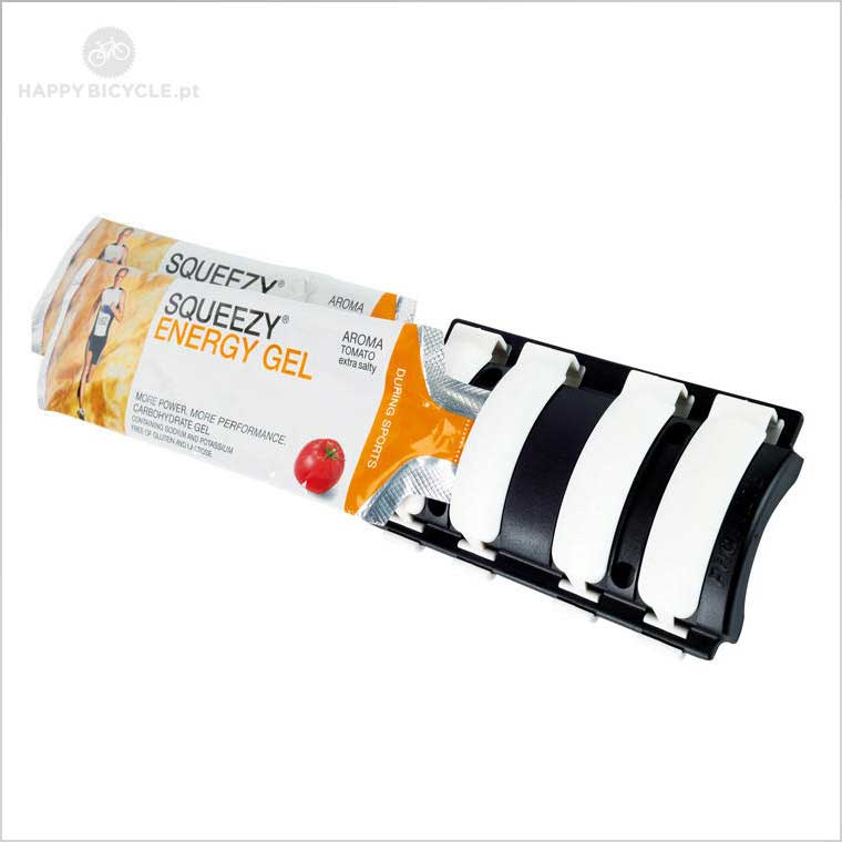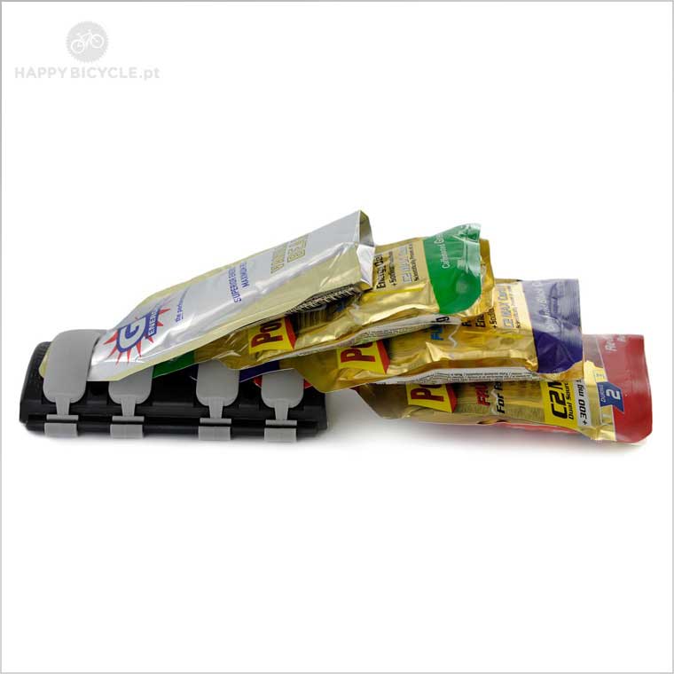 Simples de usar, permite fácil acesso às saquetas energéticas sem mudar de posição, melhorando a eficiência e desempenho dos atletas. Uma vez que são posicionados adequadamente, as saquetas são esticadas e abertas num único movimento.