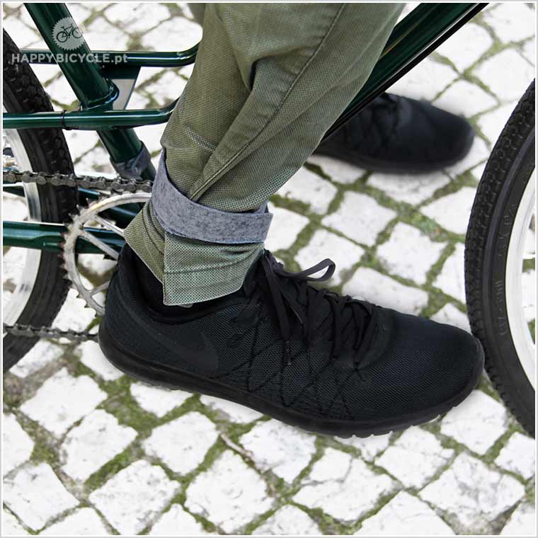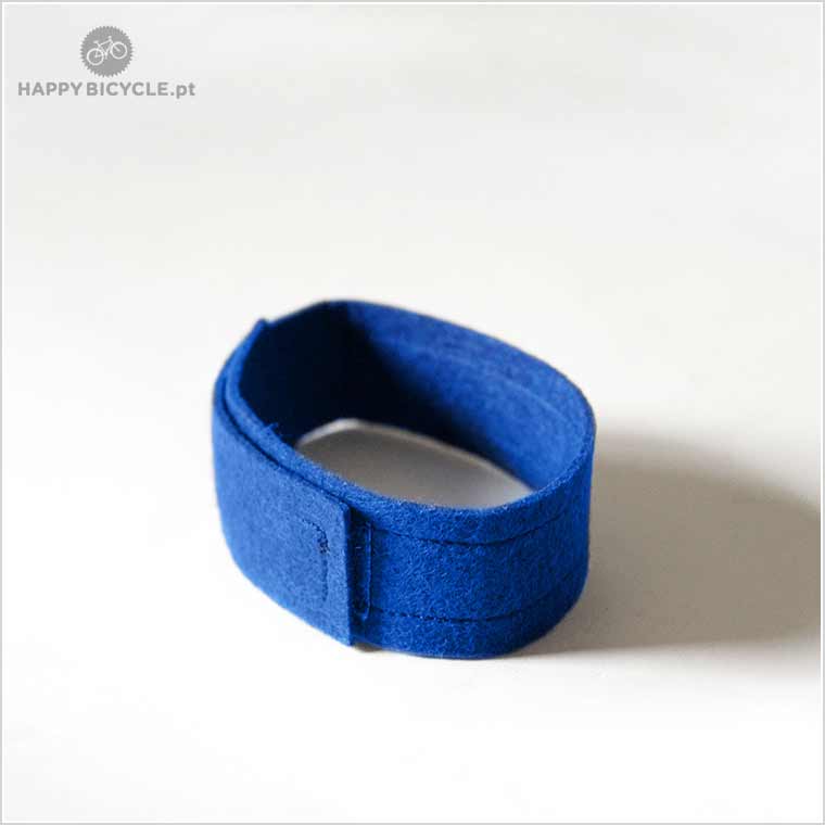 Prática Fita de Feltro com dupla função, de prende-calças e de prende-rodas (quando está num suporte de parede para o pneu não rodar, deixando marcas de sujidade na parede).