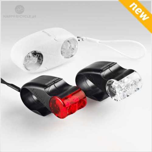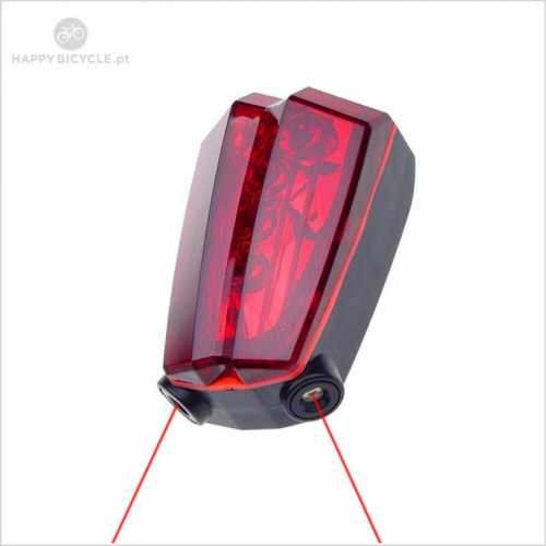Equipada com lâmpadas LED e botão ON/OFF no topo, vem com 3 pilhas AAA incluídas, e apoio para montar no furo do travão da forqueta.