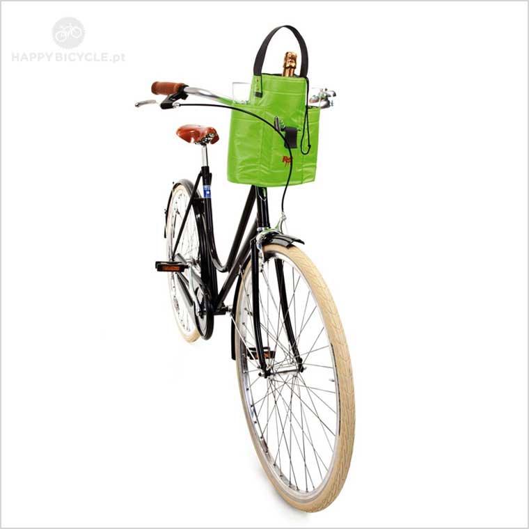 Versão para bicicletas de senhora. Bolsa com compartimento para garrafa, para fixar no guiador da bicicleta.