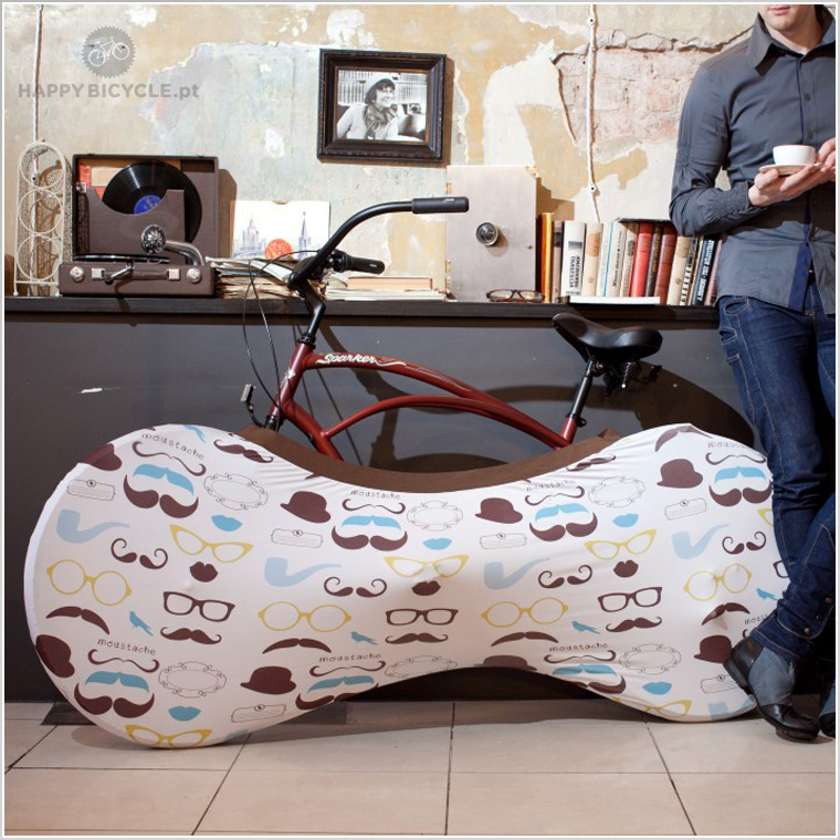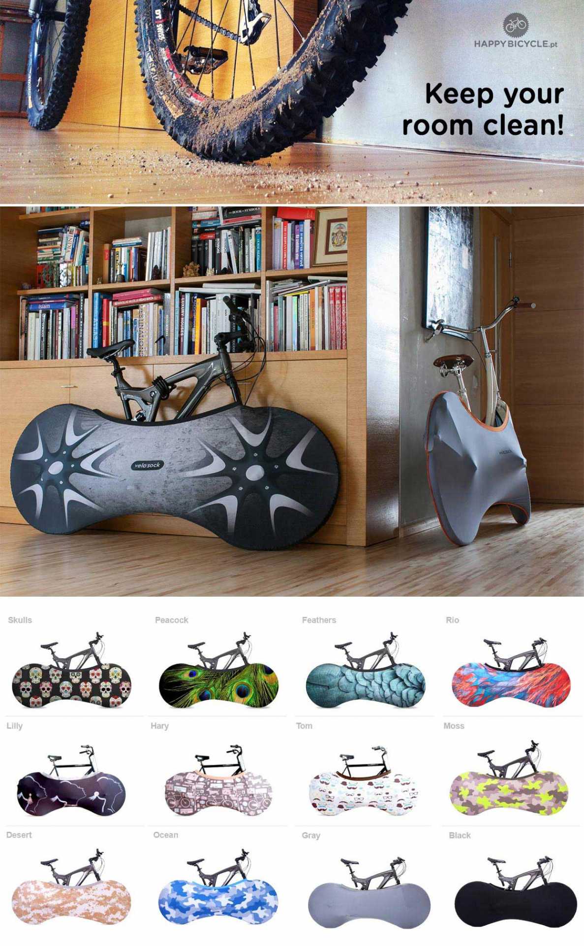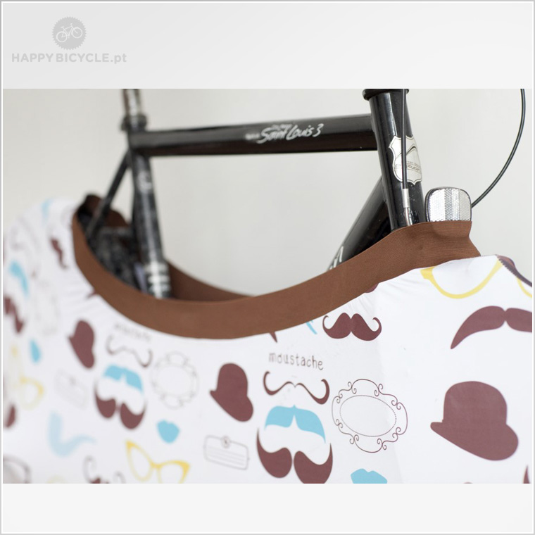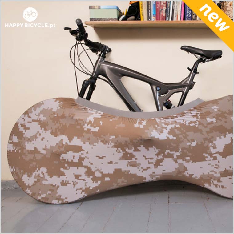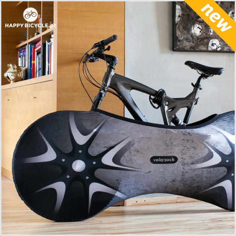 A Velo Sock é aplicada levantando a roda dianteira da bicicleta, e colocando a “meia” em volta da roda, o tecido deve-se encaixar totalmente e aderir firmemente à roda da bicicleta. Uma vez feito isso, puxe gentilmente a “meia” sobre os pedais, mudanças, e roda traseira, tomando cuidado para que o tecido não fique preso em peças afiadas que possam danificar o tecido.