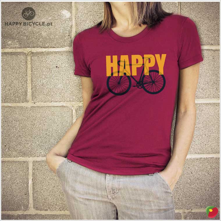 T-shirt serigrafada com ilustração”HAPPY”, se fica feliz a andar de bicicleta porque não o divulga ao mundo?