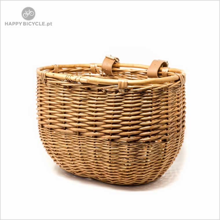 Cesta em vime com formato elegante, para montar no guiador através de fivelas.