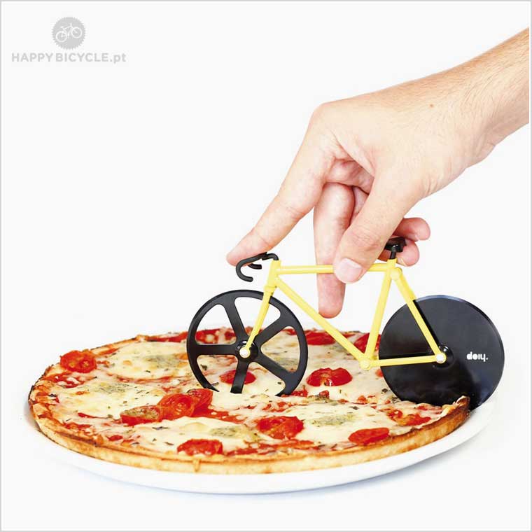 Este cortador de pizzas em forma de bicicleta irá adicionar um toque cosmopolita às suas noites de Pizzas com amigos.