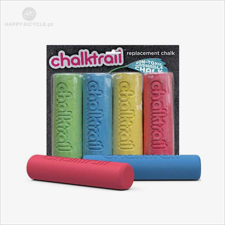 Um pack de recarga incluí 4 unidades. Cada giz tem uma duração aproximada de 2,4 km (x4 = 9,6km).