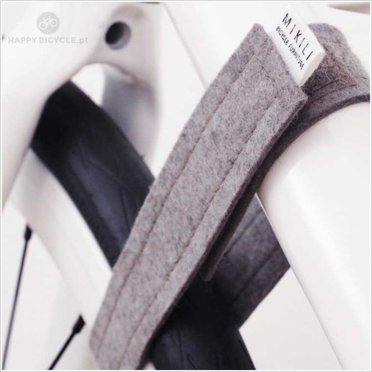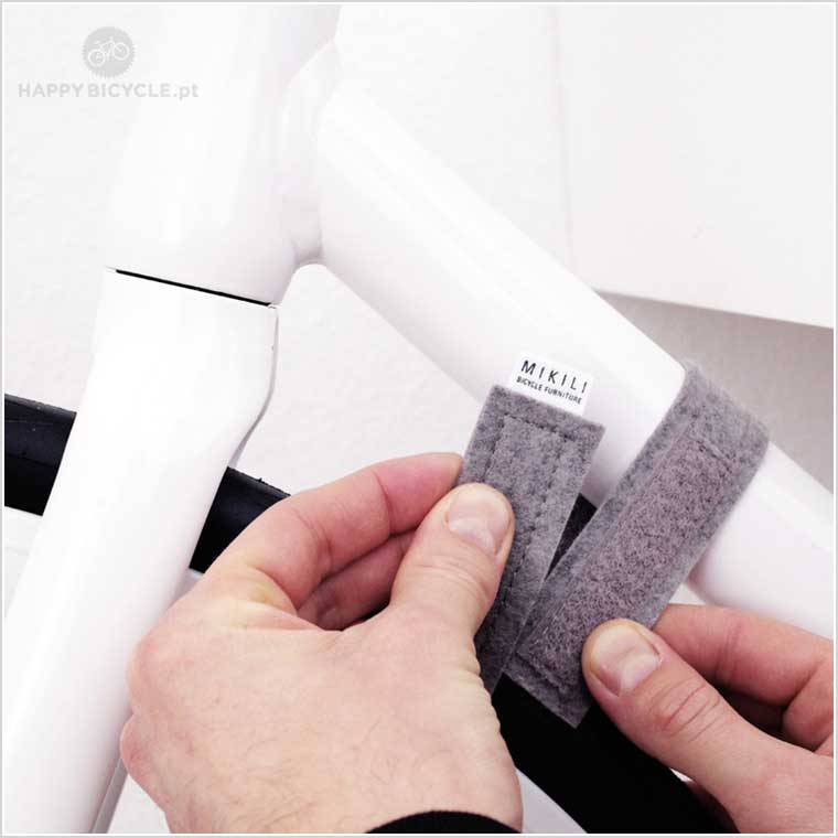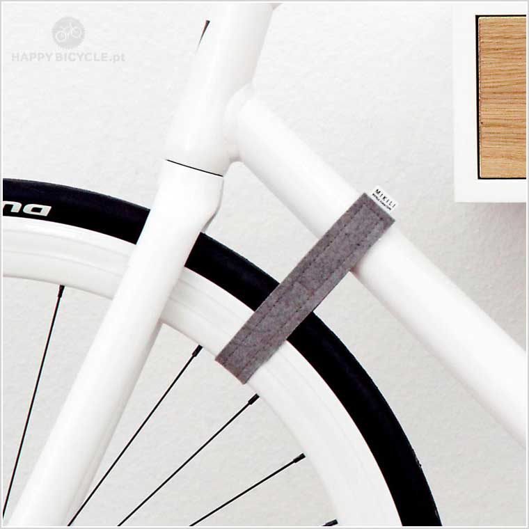 Prende a roda da frente e o tubo inferior da bicicleta para garantir que o guiador ou o pneu não rodam, deixando marcas de sujidade na parede. Está incluída uma SNUR em todas as encomendas do móvel KAPPO.